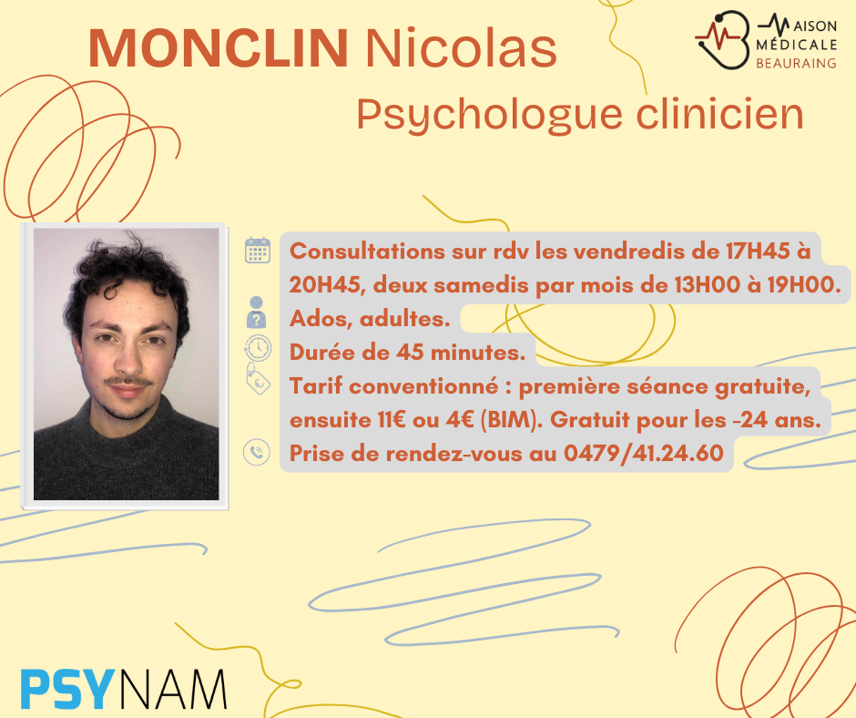 Mr MONCLIN Nicolas, psychologue clinicien, rejoindra notre équipe à partir du mois d’avril. 𝘿𝙤𝙢𝙖𝙞𝙣𝙚𝙨 𝙙𝙚 𝙘𝙤𝙢𝙥𝙚́𝙩𝙚𝙣𝙘𝙚 Les troubles anxieux (sous […]