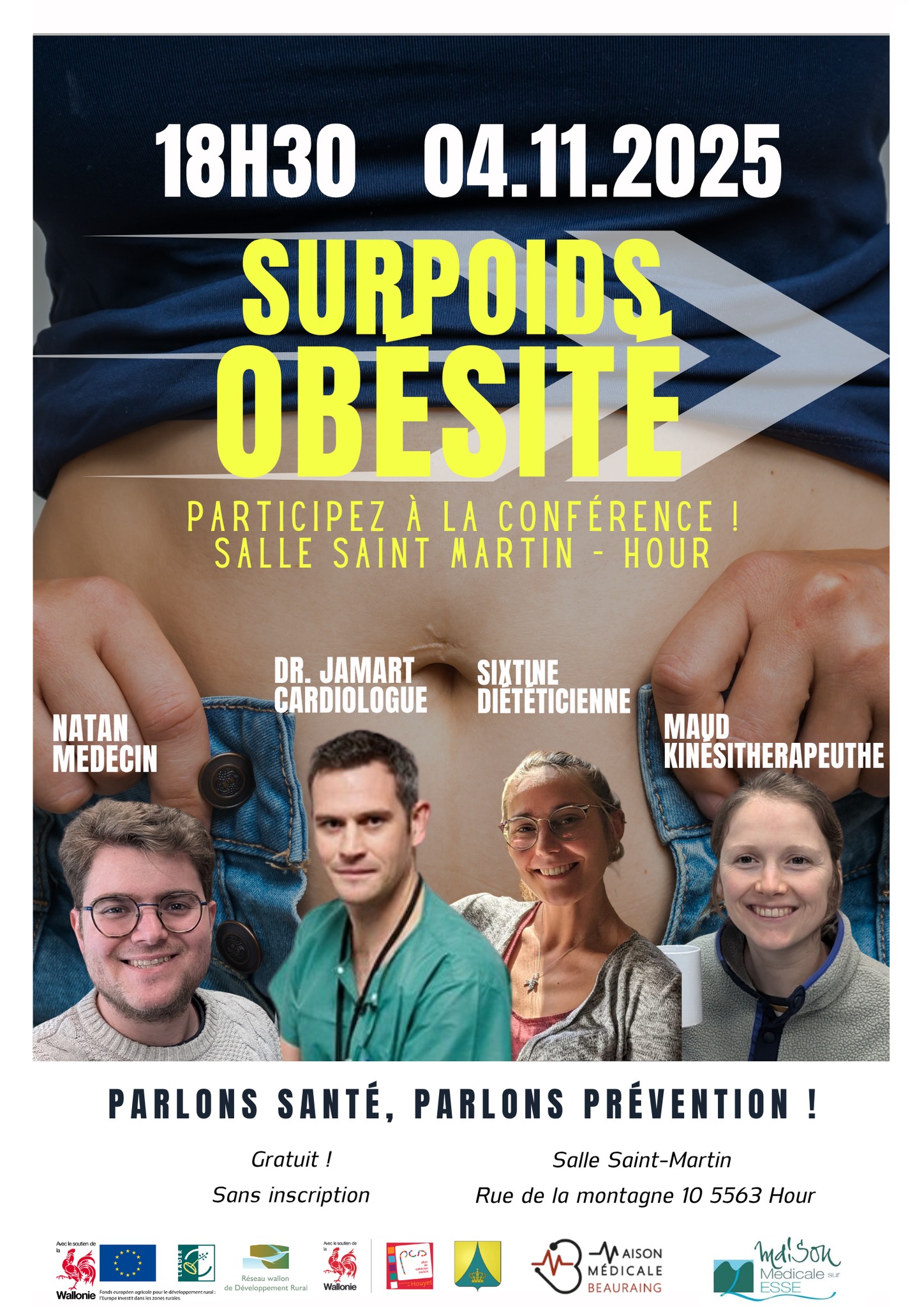 Le 𝟰 𝗻𝗼𝘃𝗲𝗺𝗯𝗿𝗲 prochain, nous nous rendrons chez nos confrères houyétois pour assister à une conférence sur le surpoids et l’obésité.