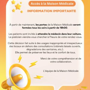Chères patientes, chers patients, Ces dernières semaines, vous avez été nombreux à prendre rendez-vous avec le Dr Motte. 𝐃𝐞𝐩𝐮𝐢𝐬 𝐥𝐞 […]